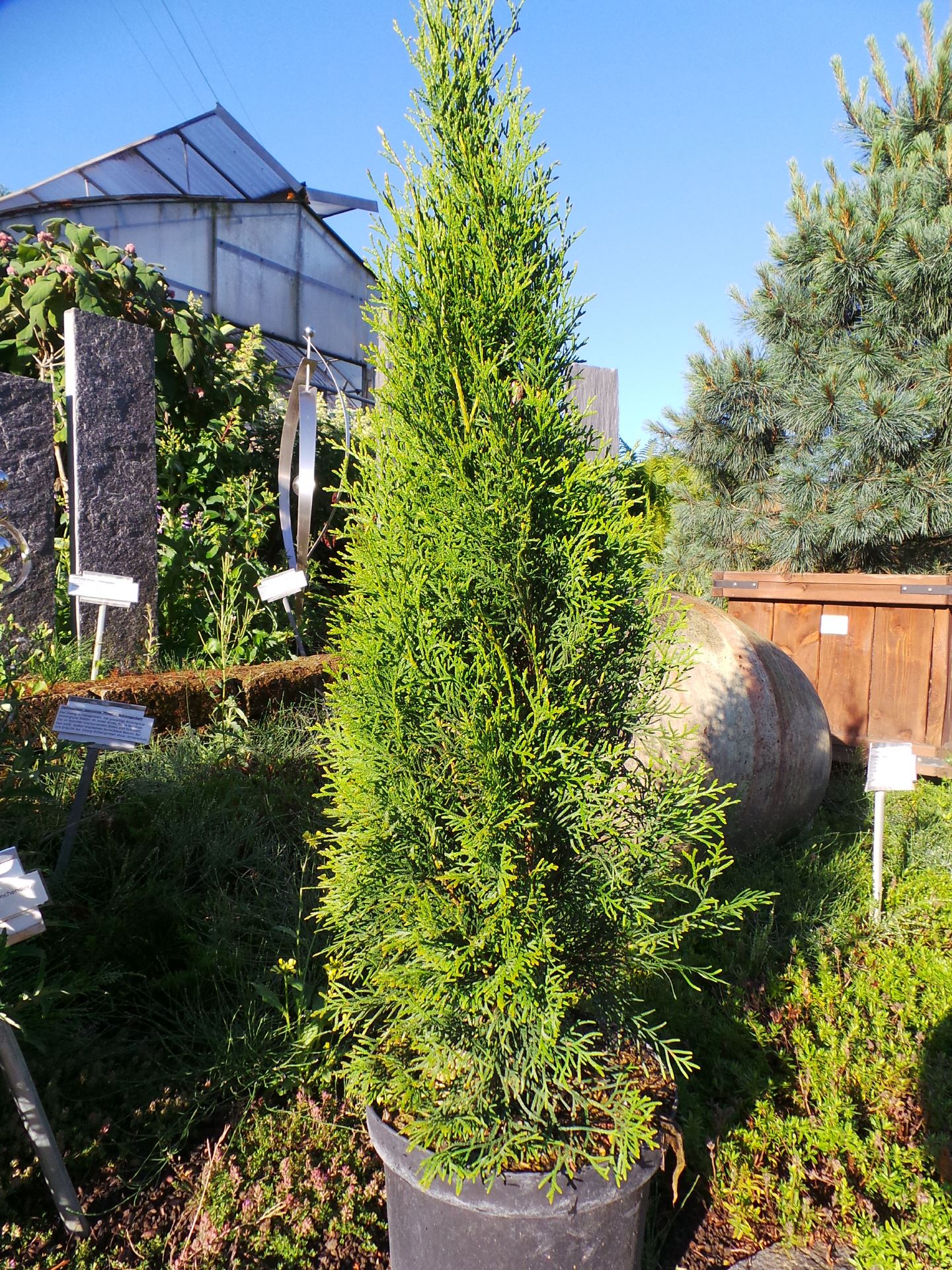 Wuchs: Völlig geschlossener kompakter gleichmässig kegelförmiger Wuchs. Ungeschnitten kann diese Sorte 4-6 m hoch werden und ca. 1-1,8 m breit. Der Jahreszuwachs in der Höhe beträgt durchschnittlich...
