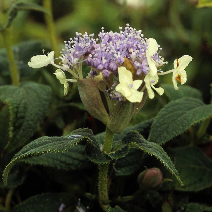 Kugeliger, sommergrüner Strauch, bis zu 1 m. Großblättriges gräulich grünes und filziges Laub. Große lilafarbene Schrimprispen im Juli bis Oktober. Sonnig oder halbschattig. Nährstoffreiche Böden. ...