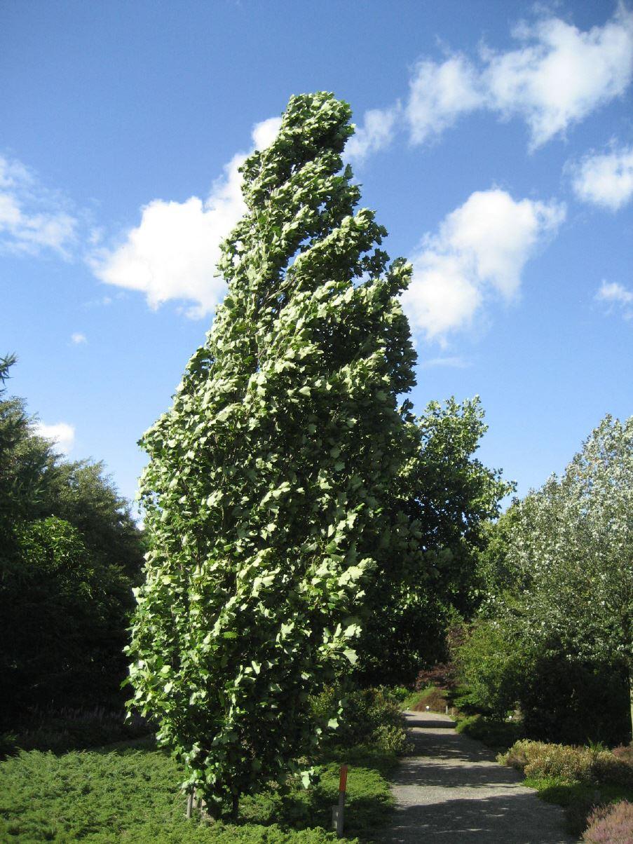 Grösse: Dicht verzweigter Baum, bis ca. 10-15m hoch werdend. Krone pyramidal.Später wird die Krone etwas breiter. sommergrün. Früh und frischgrün austreibend.