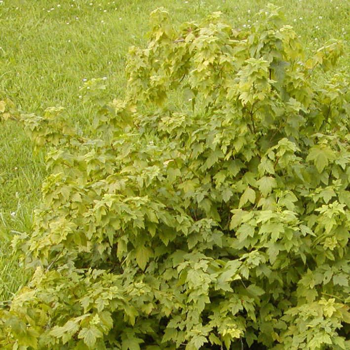 Strauch bis 1,5 m, junge Zweige schwach behaart, drüsig; Blätter fast kreisrund, 3-7 cm breit, 3-5lappig, unterseits drüsig punktiert und auf den Nerven behaart, Herbstfärbung gelb und rotbraun; Blüten gelblichweiss, glockig, in vielblütigen, 10 cm langen, hängenden Trauben; April-Mai; Frucht schwarz, glatt; östliche und mittlere Ver. Staaten