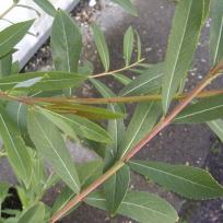 Laub: Immergrün; bis 10 cm lang, lorbeerblattähnich, schmal, glänzend dunkelgrün.