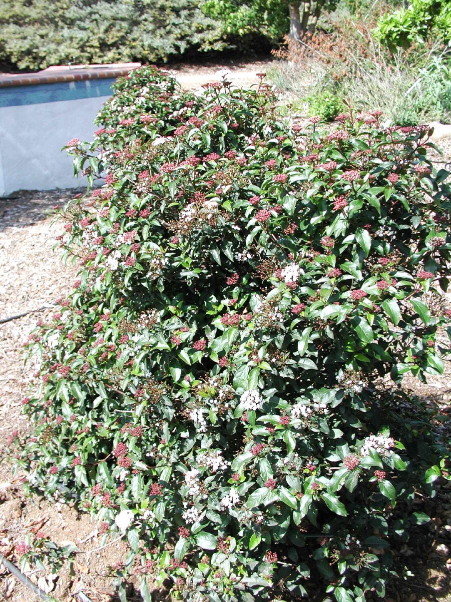 Dieser Schneeball ist immergrün, schwach dichtwachsend mit kleinen, dunkelgrün glänzenden Blättern. Er wird ca. 2,5 m hoch.