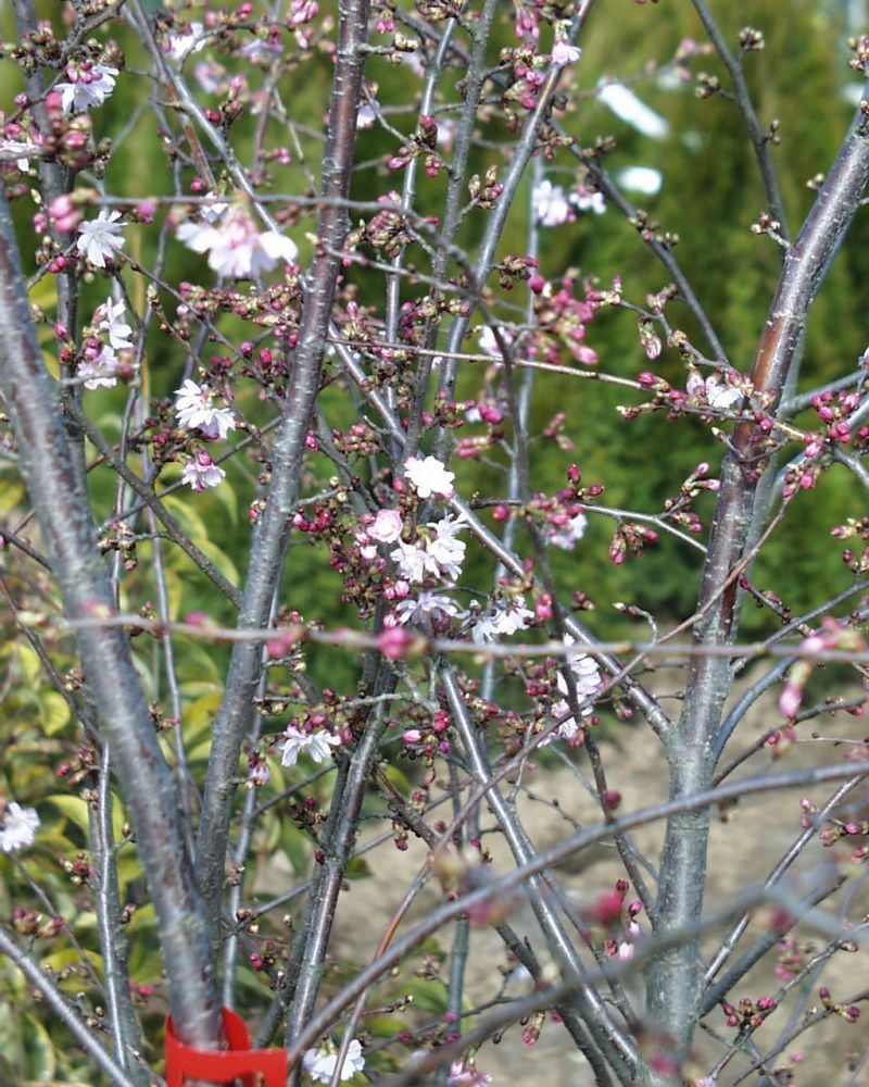 Prunus subhirtella 'Autumnalis' Rosa Winterkirsche 'Autumnalis' Heimat/Herkunft: Wuchs: Kleiner, breit verzweigter Strauch oder Baum mit feintriebige lockerem Wuchs und leicht überhängenden Zweigen...