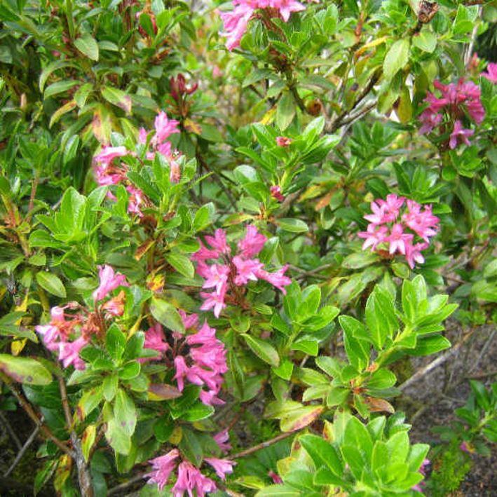 Rhododendron hirsutum Heimat/Herkunft: Alpen. Wuchs: Dichtbuschiger, niederer, kompakter Strauch, bis 1 m hoch werdend. Blatt: Klein, elliptisch, frischgrün, behaart. Blüte/Frucht: Trichterförmig,...