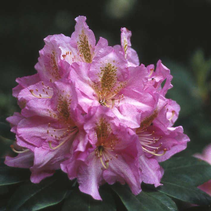 RHODODENDRON Catawbiense Grandiflorum Rhododendron, Alpenrose Catawbiense Grandiflorum Im Wuchs; bis 3m hoch; Blüten hellpurpurviolett bis lila mit rotbrauner Zeichnung, Rand der Blütenblät...