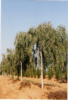 4-5 m hohe Birke mit schirmartiger Krone und dünnen, fadenförmig herabhängenden Zweigen. Sie bildet aber keinen Mitteltrieb - alle neuen