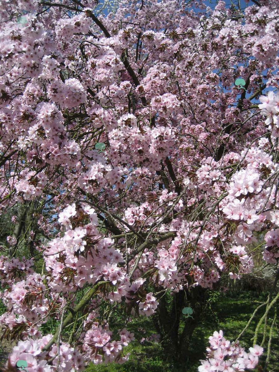 Blut-Pflaume 4-6m, Blatt: schwarzrot, Blüte: rosa III-IV, Frucht: rot, essbar, für Spielplätze geeignet, durch Blatt und Blüte sehr zierend.