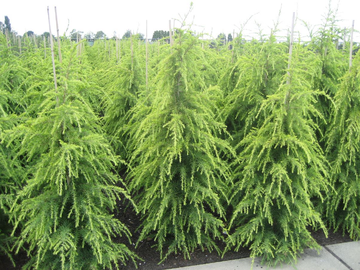 -5 m, im Alter bis 10 m, -2 m breit, im Alter -4 m, goldgelbe Nadeln, elegant kegelförmiger bis malerischer Wuchs, durchlässiger Boden, sehr schöne Solitärpflanze, ein wahrer Blickfang